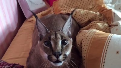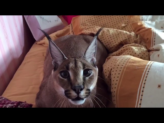 Ležící na posteli, domestikovaných Caracalla Zdá se nelíbí kamery.