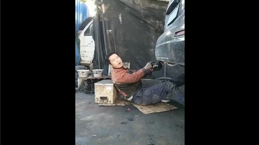 Muž z Číny provést okamžitou změnu barvy kůže, pomocí výfuku auta.
