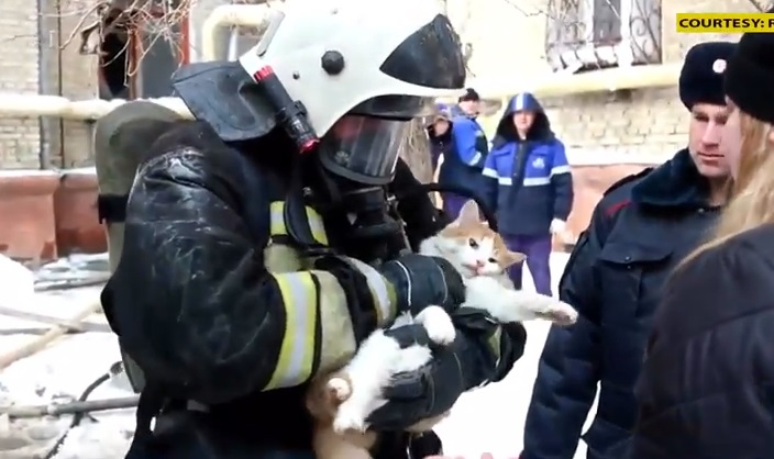 Pondělí 26.ledna, Ruští hasičů zachránil kočku ve městě Volgograd dělat kardiopulmonální resuscitace a používání stlačeného kyslíku.