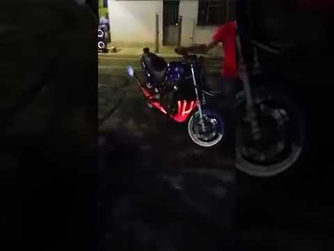 Muž gkazonei po dlouhou dobu při vysokých otáčkách svůj motocykl, a odpařování drapáky požární.