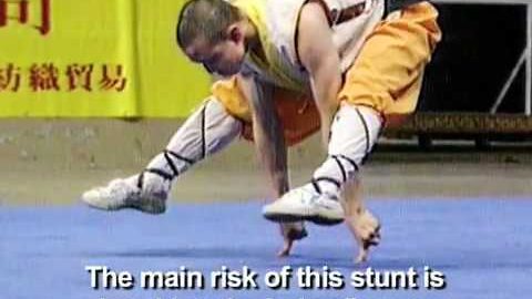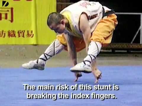 Mnich Xingsong Sing z chrámu Shaolin z Číny je jedním z mála lidí na světě, který může podporovat své tělo s dvěma prsty.