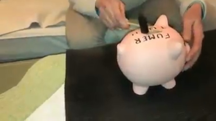Žena ve Francii přestat kouřit před asi rokem, a rozhodl se shromáždit v prasátko peněz vynaložených na cigarety. Rok poté, co rozbil prasátko a ukazuje výsledek.