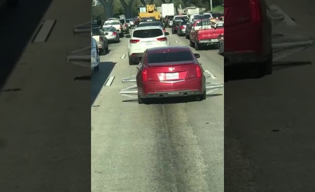 Kola vozu v Houstonu, Zdá se, že vyčnívat příliš od svých pneumatik.