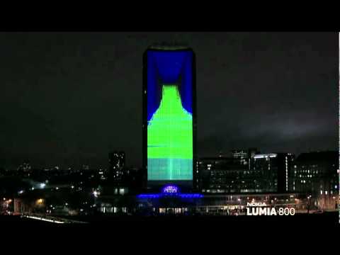 V souvislosti s uvedením nového mobilního telefonu Lumia 800, Nokia uspořádala této velkolepé události na londýnské Millbank mrakodrap.