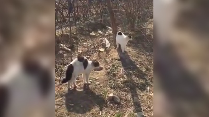 V poli v Číně, skupina toulavých koček útoku psa, který provedl procházku se svým šéfem.