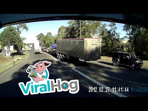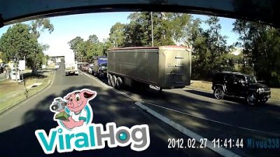 Seděl jsem v autě na kruhový objezd, když B Trailer oddělen od přívěsu jiného kmene vstupujícího na kruhový objezd před sebou.