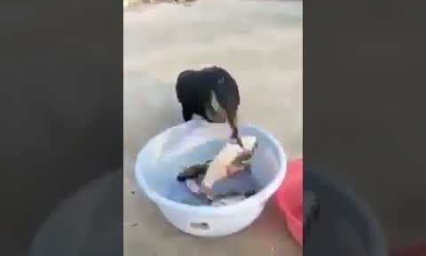 Hladový mořský pták jíst ryba s ohromující rychlostí.