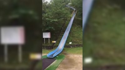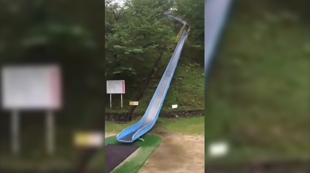Park Asakura Midori-no-Furusato City Imabari, Japonsko, byl donedávna tento snímek 60 metrů, který byl popisován mnoho jako nejnebezpečnější zemi na saních. Saně existuje již od roku 1991, ale v poslední době dostala negativní publicitu, když se tato videa ukazovala, jak mladí lidé sjížděli vysokou rychlostí na malých „sáňkách“. Po nehodě malého dítěte, Sklíčko bylo demontováno v dubnu 2018.