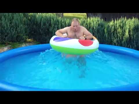 Guy dělá Vlny v nafukovací bazén Použití Intertube