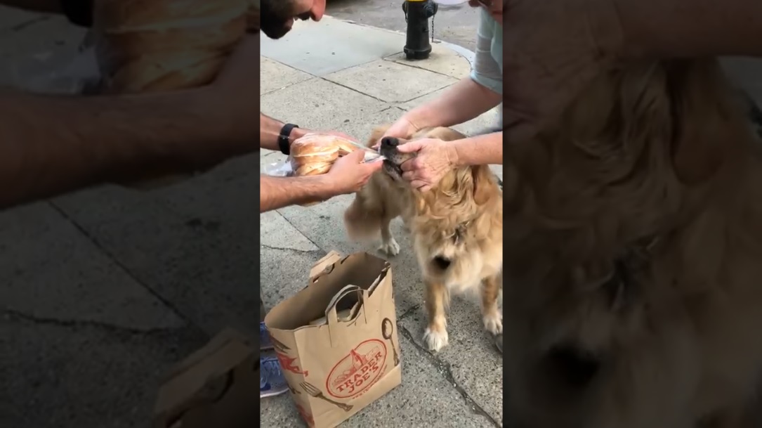 Po návratu z nákupů, pár potkal paní psa. Chtít hladit zvíře, nechat na holičkách své nákupy a že byl výsledek.