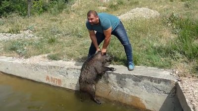 Farmář v Turecku pomáhá rodinu divočáky uvězněných v zavlažovacího kanálu.