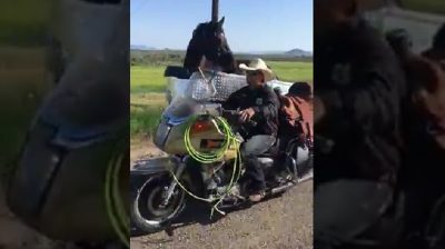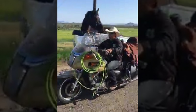 Ve Spojených státech Intacho, Casey Perkins postavena speciální vozík na motocyklu, které lze přepravovat své koně.
