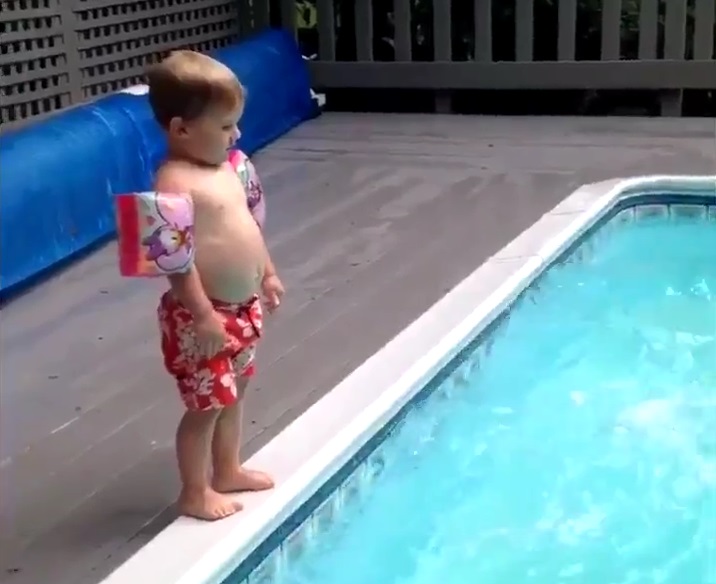 Malý chlapec je v rozporu s pravidly, a rozhodne se udělat dojem svůj vynález v bazénu. Jemné!