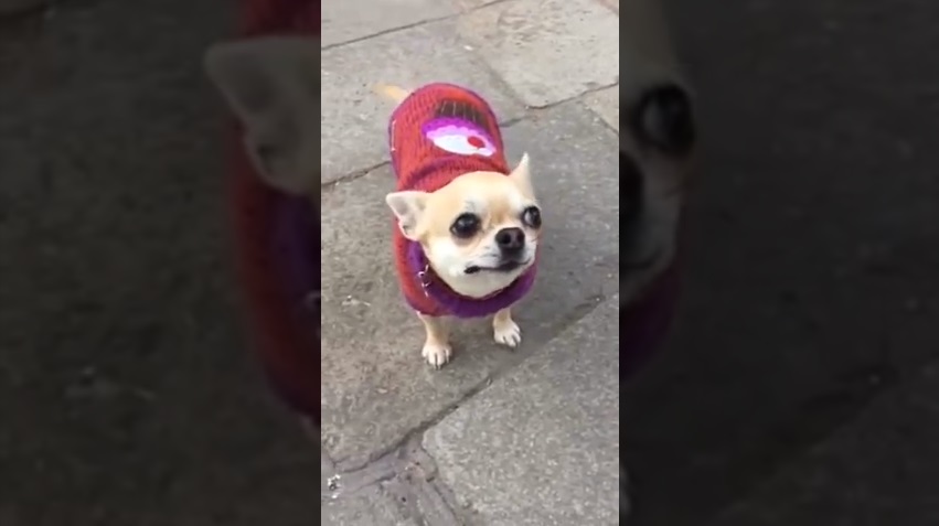 Čivava pes se snaží křičet poslech zvonek, ale nezdá se, že věří,.