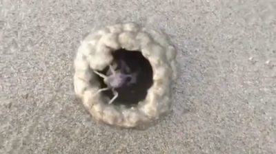 Písková-bubbler krab iglú stavbu písečné pláže.