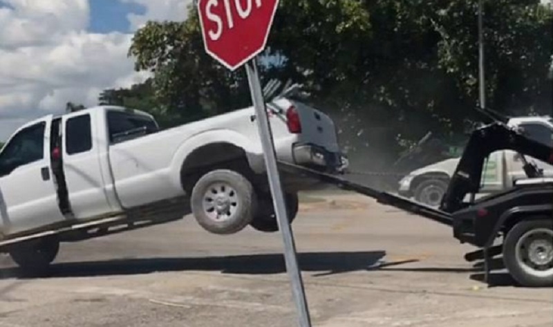 Řidič van Ford F-Series ve Spojených státech Miami, se snaží získat své vozidlo z jeřáb zvedl. Řidič se nevyplácí v době, kdy vozidlo, a jeřáb přišel ho získat. Vidíme v okamžiku jeřábu zvednout do vzduchu a video náhle končí. Podle jeřábníka, muž nedokázal vzít auto a zatčen poté, co policie.