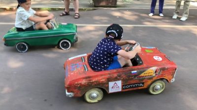 Jedná se o pedál automobilový závod. Můj syn je ten v zeleném autě. Děti jsou takové tvrdé řidiči, nikdo nechce prohrát, jen vyhrát. Making složité manévry, tak hrdý.