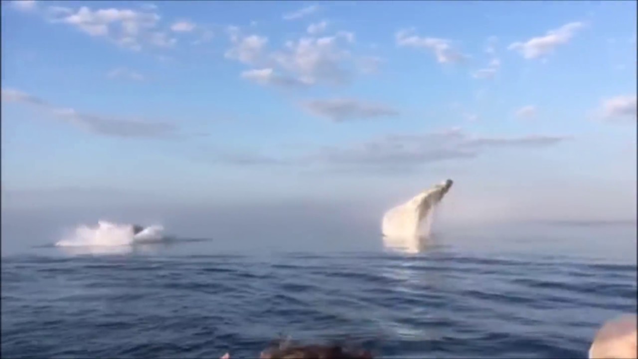 STS 17. srpna 2018 v Nova Scotia, Kanada, turisté v lodi měli to štěstí, aby si prohlížejí tři keporkaků také vyskočil z vody.