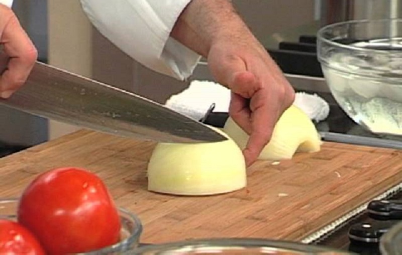 Francouzský šéfkuchař Jean Pierre nám ukazuje, co bychom měli dělat, pokud chceme, aby nakrájíme cibuli.