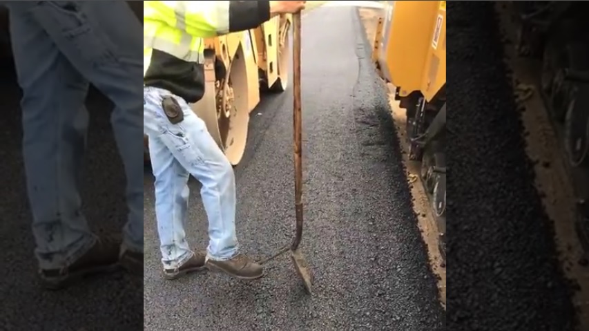 Indiana United States, silniční stavební dělník stavěl lopatu s porosty. Již není potřeba ohýbat pokaždé, když potřebujete lopatu.