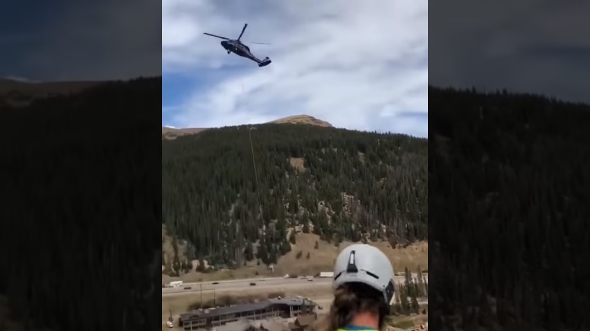 Ski areál Loveland Ski Area v Coloradu, nový kabel je vyráběn. Vzhledem k odlehlosti oblasti, Je mobilizován vrtulník pro přepravu cementu. Pilot umožňuje přesné pohyby vést kbelík s cementem nad bodem.