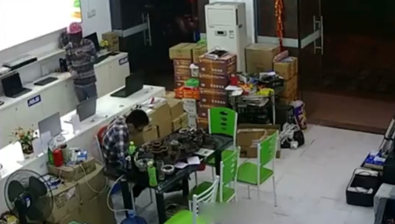V obchodě s počítači v Číně, zloděj vstoupí aniž by si všiml úředník, který se zabýval jeho mobil. pomalu, popadne tři notebooky z regálů v obchodě a zmizí.
