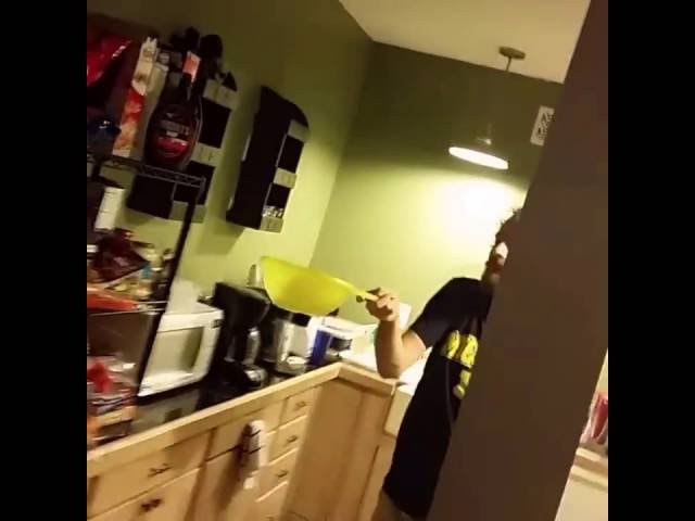 Člověk chytí netopýra v kuchyni s plastovým cedníku.