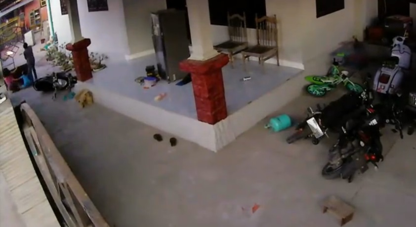 Bezpečnostní kamera na dům v Palu, Indonésie, zaznamenává intenzita 7 zemětřesení,5 Richter a děsivé tsunami.