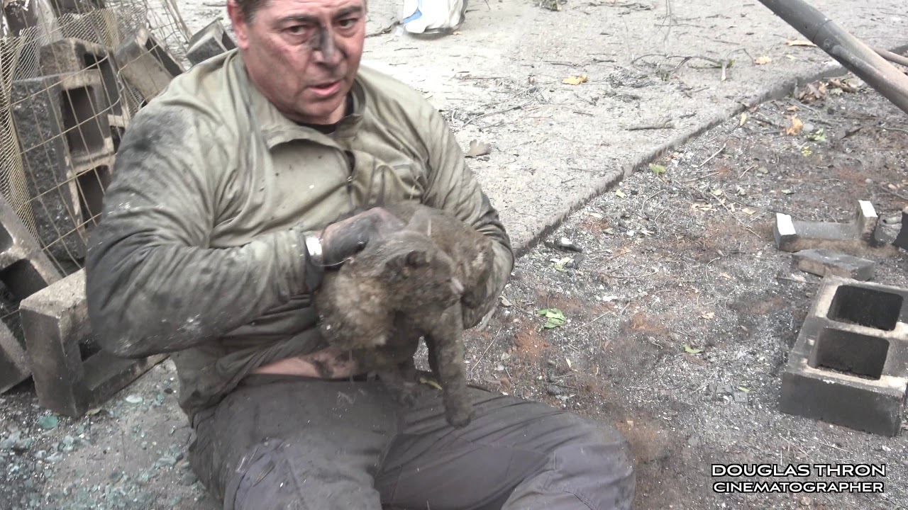 Záchranný kočka z Shannon Jay City ráj, Ihned po ničivém požáru, který spálil téměř celý region. Jay zachránil nespočet koček, jako je tento a neustále hledá do regionu více bezbranných zvířat.