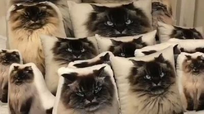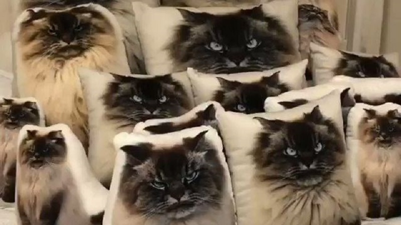 Himálajský kočky se skrývá mezi polštářky s fotkou. Můžete najít;