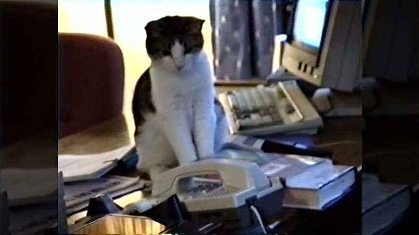 Muž zjistil, že pokaždé, když jsem se obrátil do domu, sluchátko v kanceláři byl mimo pozici. Brzy zjistil, že kočka byla zodpovědná za to. Video byl natočen v roce 1994.
