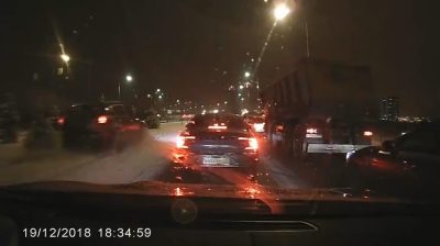 Dne 19. prosince 2018 v Moskvě, řidič se snaží, aby se zabránilo pohybu se svým SUV, rozjezd ulici. Nakonec to bude spadat do rokle, a auto bude svržen.