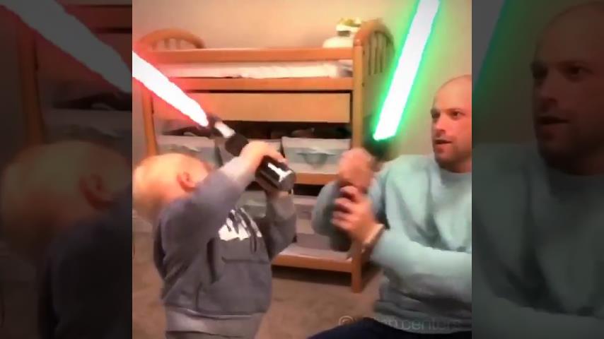 V Mitch Centers swordsmanship hraje se svým synem, přidávání některé speciální efekty světelný meč. Nejpůsobivější však je výklad malé, předstírání, který právě spadl mrtvý.