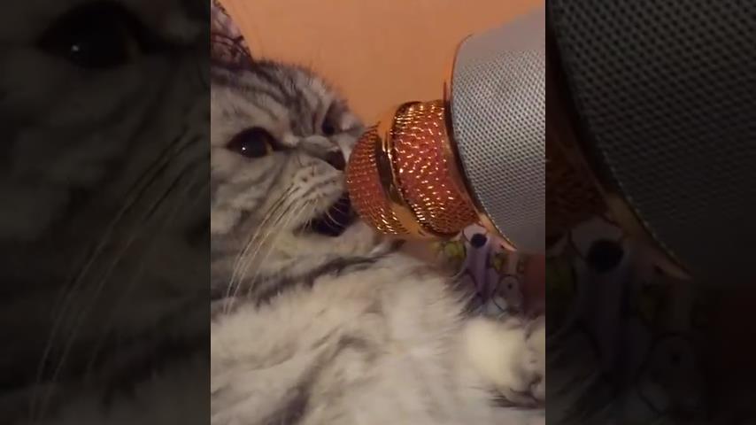 Mňoukání kočky přes mikrofon, přidáním některých reverb efektů.