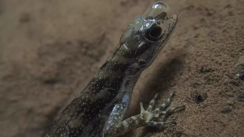 Ještěrka Anolis aquaticus žijí vedle potoků v horách Kostariky, Jsou schopni udržet vzduchovou bublinu v hlavě, která pomáhá jí dýchat pod vodou po dlouhou dobu. Tento vynikající chování bylo pozorováno a natáčel poprvé od Lindsey Świerk University of New York Binghamton.