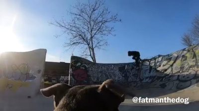 V Rob Mathison, Používá psa jako kameraman pro vysunovací videu jako bruslení.