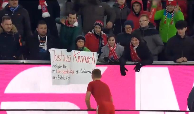 Hráč Bayernu Mnichov, Joshua Kimmich, blížící mladého následovníka skupiny letět dres, ale člověk se rychle blíží zezadu a drapáky. Zbytek diváků, kteří byli poblíž pódia, bude reagovat…