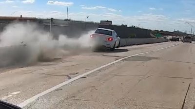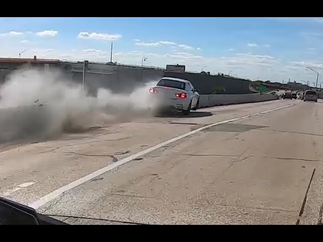 Na dálnici, motocykl a BMW začíná závod mezi nimi. Řidič vozu ztratil kontrolu a spadnout do ochranných ostrůvků.