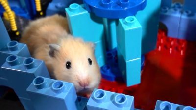 Křeček bude muset projít složitou překážkovou dráhu v zámku z LEGO, dokud nedosáhne kýžené ocenění.