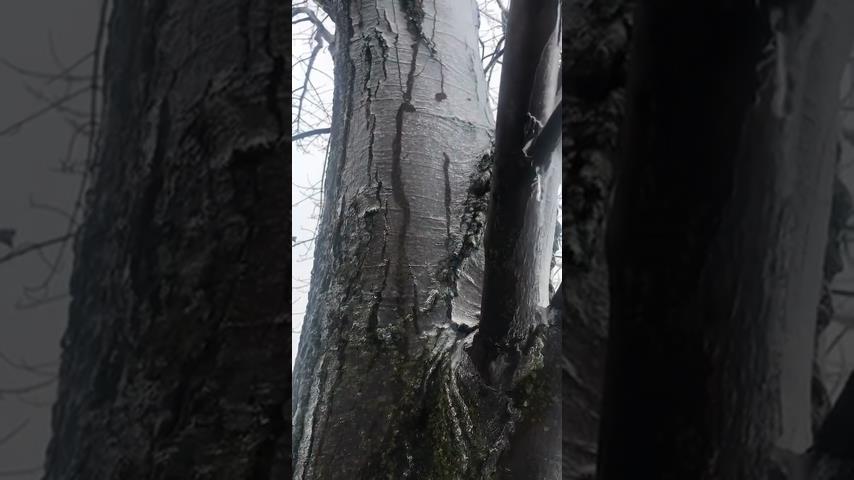 Strom je pokryta vrstvou ledu ve městě Evanston Illinois, a led se zdá taje postupně mezi kufru.