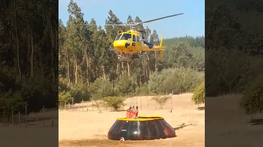 Forest oblasti El Calvario oblasti v Chile, hasicí vrtulníky naplněné vodou jednu po druhé, uhasit požár, který zasáhl plochu pondělkem 25 únor.