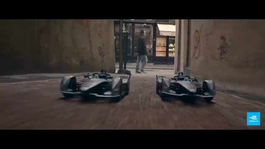 Dvě malá auta na dálkové ovládání soutěžit ve městě, nový reklamní vzorec E. Šampionát Formula E je auto na elektrický pohon závodních šampionátů pořádaných FIA.