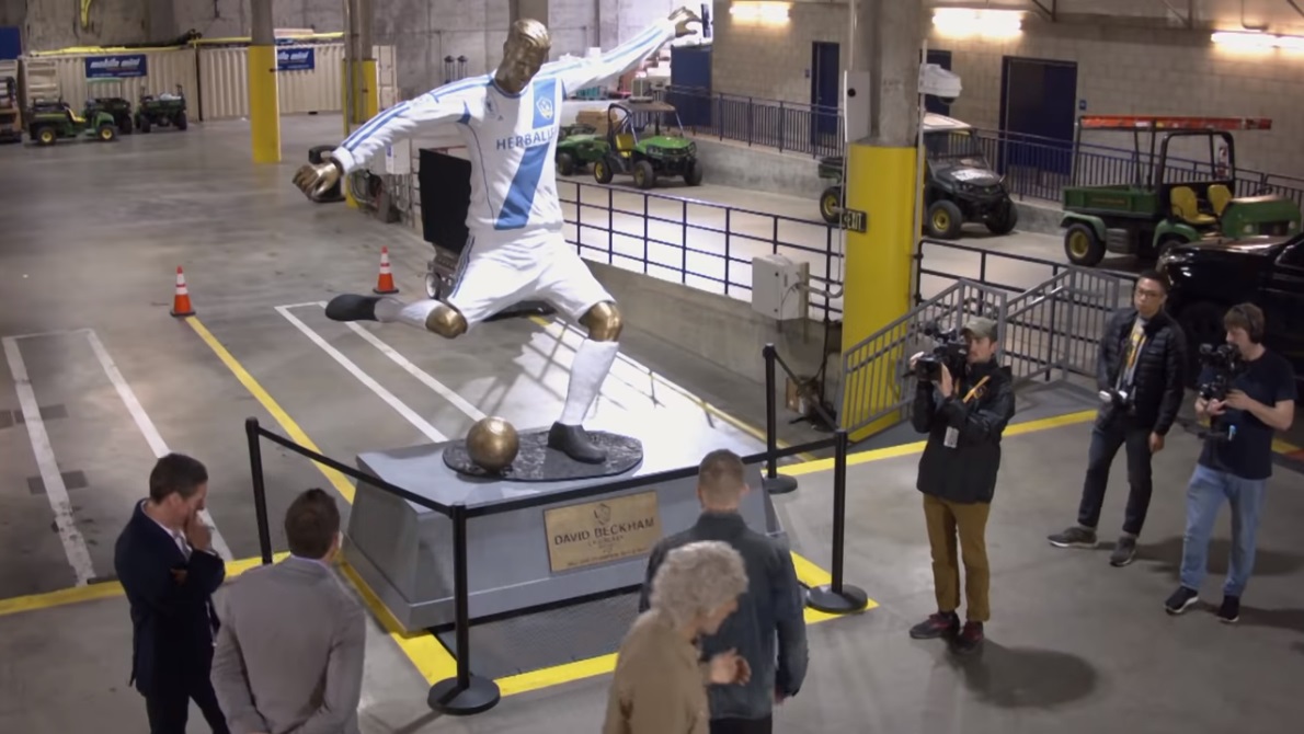 Vzhledem k tomu, Los Angeles Galaxy se připravuje na počest David Beckham se sochou mimo stadion, moderátor James Corden a jeho tým si myslel, že je velmi vtipný žert.