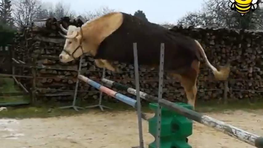 Na Viéville-sous-les-Côtes Francii, Žije neobvyklý býka. Aston, býk ve věku 6 let a váží 1400 kg, Je známo, že skákat překážky a cvičil jeho majitelem Sabiny Rouas z doby, kdy se narodil. Vyrůstat se svým přítelem Samy koně, Ashton rychle naučil napodobovat chování svého partnera.
