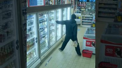 Opilý Rus v supermarketu, snaží uhýbat kulkám jako Neo v Matrixu světě.