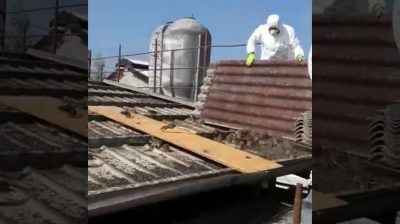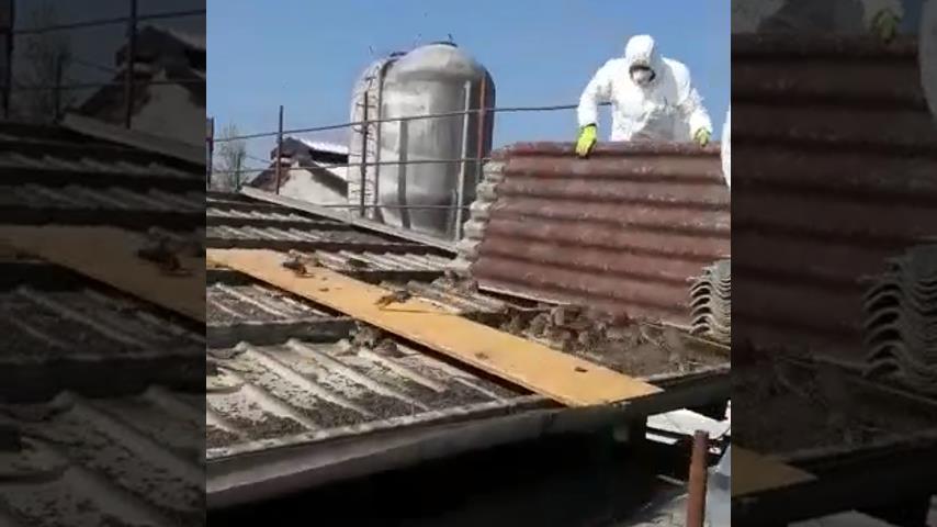 Pracovník změna střechu Elenite, a mezi deskami objevovat desítky krys.