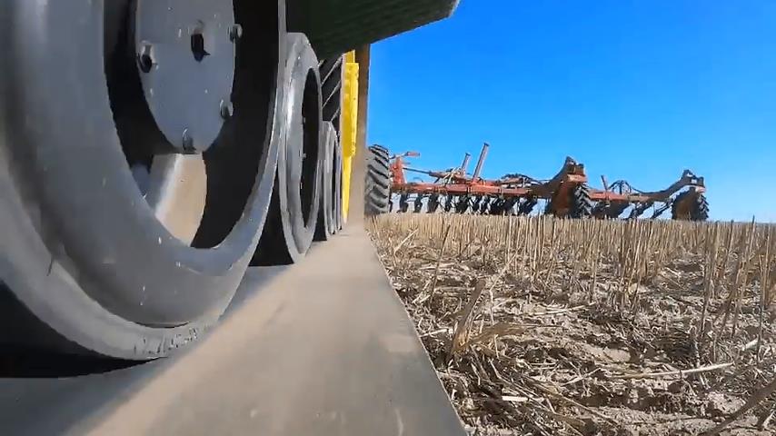 Záběry z kamery umístěné na dráze zemědělského stroje.
