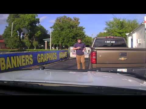 na Floridě, byl zatčen motorista, protože se policistovi nelíbil nápis „JÍM ZADEK“ na zadní straně jeho pickupu