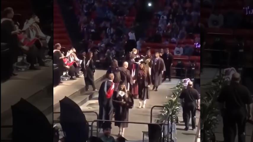 Během slavnostní promoci na Floridě ve Spojených státech amerických, mladý muž se bude snažit, aby oslavili jeho míru s opačným kotrmelec.