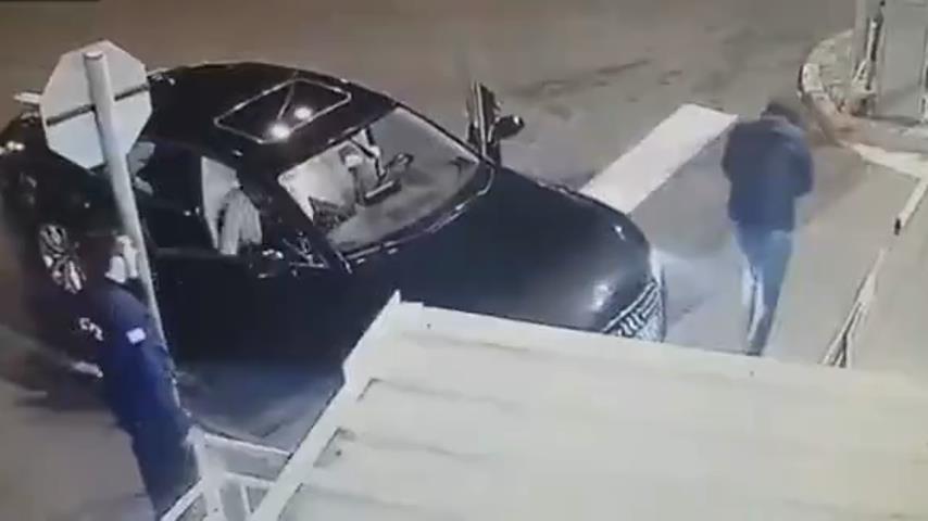 V nemocnici v Izraeli, řidič chce strávit s vozem od vchodu do sanitky a strážný vysvětluje, že toto není povoleno. Muž, pak přijde z vozu a bude agresivně přesunout na stráži, která odpuzuje ho pepřový sprej.